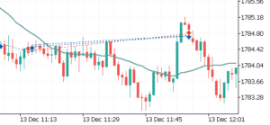 يتم تعيين MT5 افتراضيًا لفتح وإغلاق المراكز باستخدام أسهم المؤشر وخطوط الاتصال لفتح وإغلاق المراكز ، كما هو موضح في الشكل: