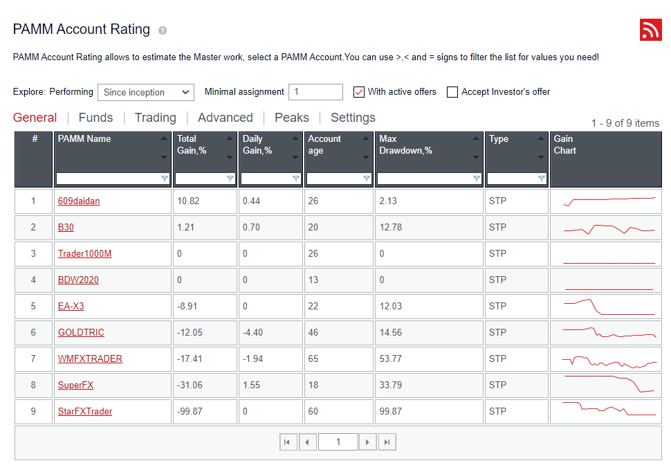 a. Log in to PAMM website, then on the main menu click “PAMM Accounts” to see available PAMM accounts (click “Active Offers” only to view the list of PAMM accounts with active offers):