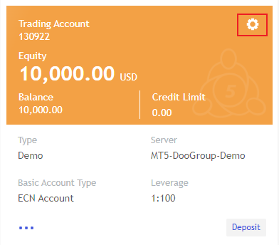 No canto superior direito da conta, clique na engrenagem, selecione uma nova alavancagem e clique em OK.