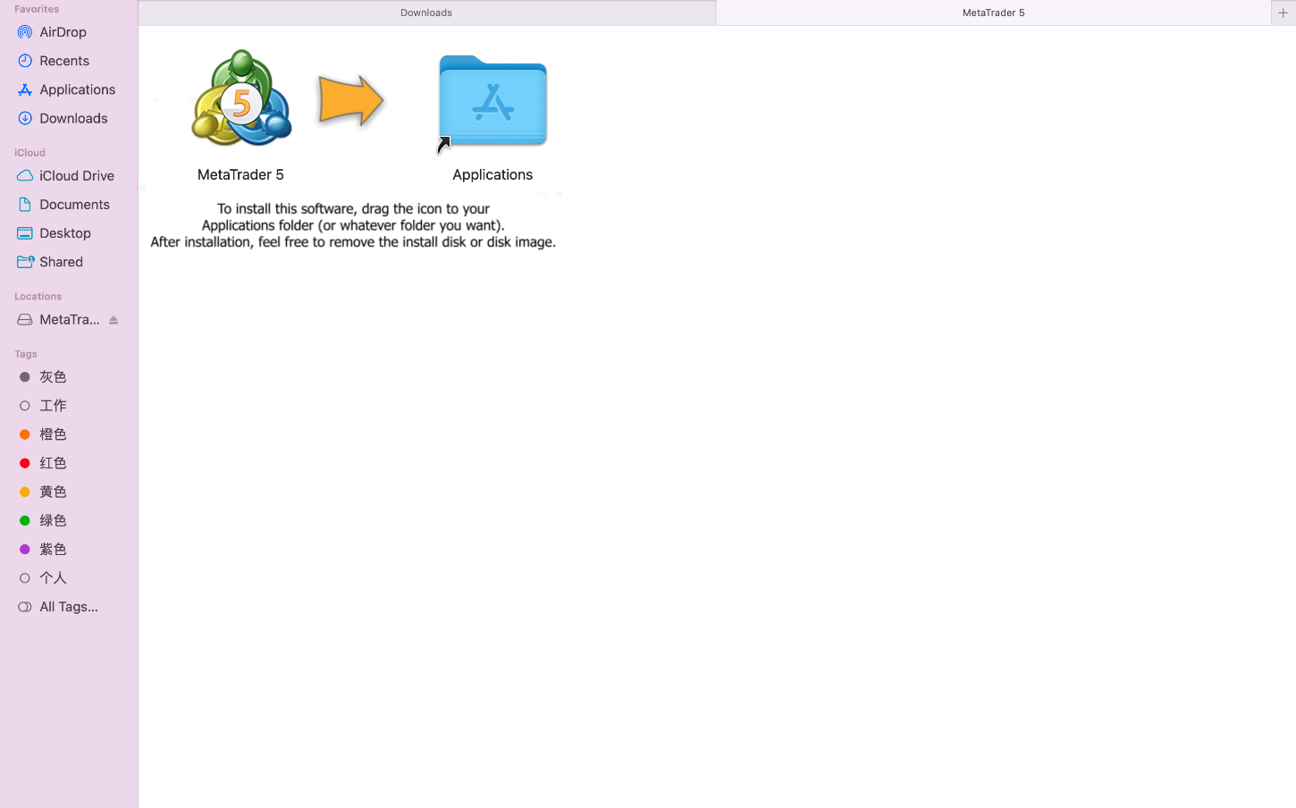 Após o download do pacote de instalação, clique duas vezes no ícone à esquerda e arraste-o para a pasta azul à direita para concluir a instalação.