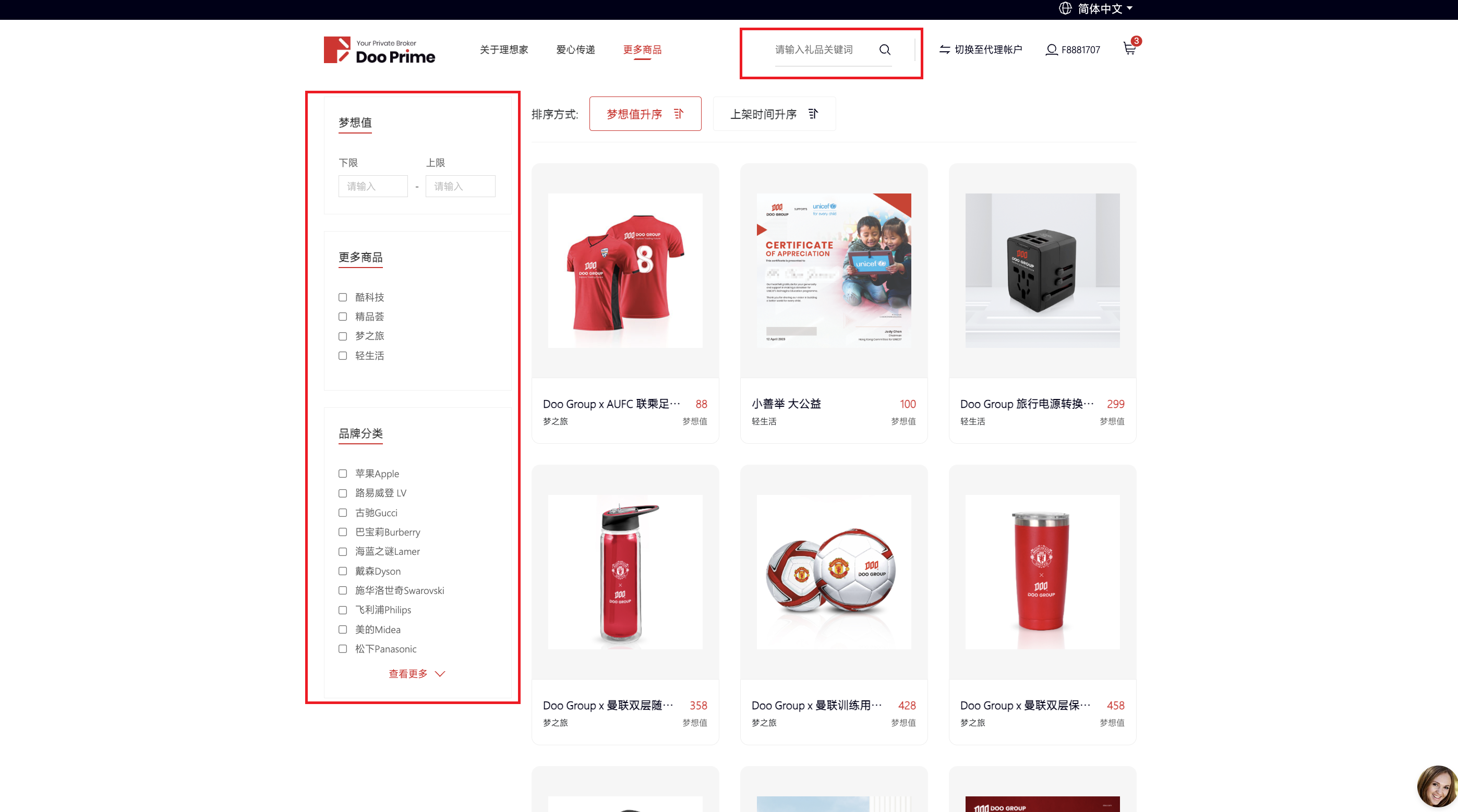 - 登入Doo Prime「理想家」積分商城,依照名稱/夢想價值/類別/品牌搜尋你想要的禮品