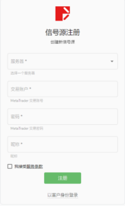 成功註冊信號源賬戶後,在主頁中點擊【創建】,然後再次填寫【交易賬戶】與【暱稱】,接著勾選【接受服務條款】便可成功新增信號源。每一個信號源賬戶只可以新增一個信號源。